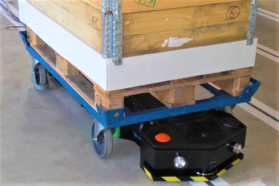 Automaticky vedený elektrický tahač AA1000-S-UnderRider slouží k tažení nákladu do celkové hmotnosti až 1000 kg. Používá se k automatizaci logistických procesů, např. automatické zásobování výrobních linek apod. Pohybuje se zcela autonomně po trase vyznačené na podlaze (k orientaci využívá optickou navigaci). Během jízdy skenuje RFID čipy umístěné podél trasy.