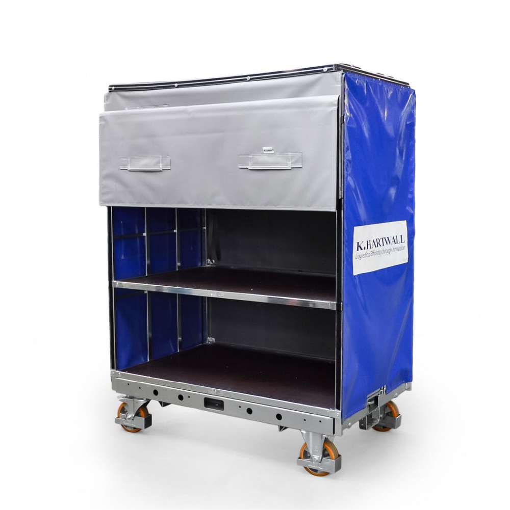 Vozík si můžete vybavit např. ochranným přepravním krytem (viz obrázky) či samonavíjecími popruhy pro bezpečné upevnění nákladu. Vyrábí se také se 6 kolečky nebo v provedení se spádovými válečkovými policemi. Více o této variantě najdete v katalogu!