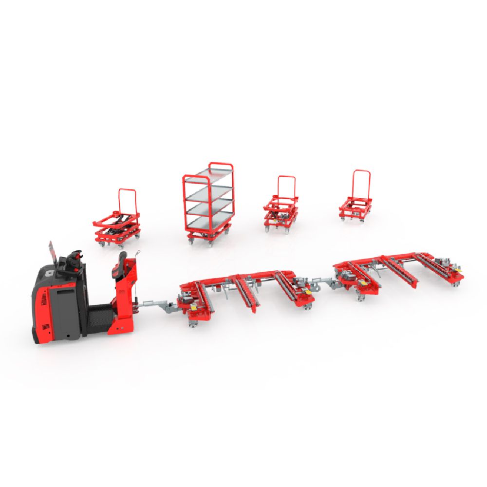 Tažná souprava E-Liner se používá ve vyrobních firmách pro přesuny součástek a materiálu k montážním linkám. E-Liner může přepravovat libovolné typy přepravních vozíků – všechny rozměry mohou být upraveny na přání zákazníka. Nakládka/vykládka vozíků na E-Liner je velmi snadná díky ložiskové válečkové dráze, viz video. Vagony E-Liner mají symetrickou konstrukci, díky tomu lze zapojit tahač z obou stran bez nutnosti otáčení. Se správným výběrem soupravy a vozíků si nelamte hlavu, rádi Vám pomůžeme vybrat nejvhodnější řešení.